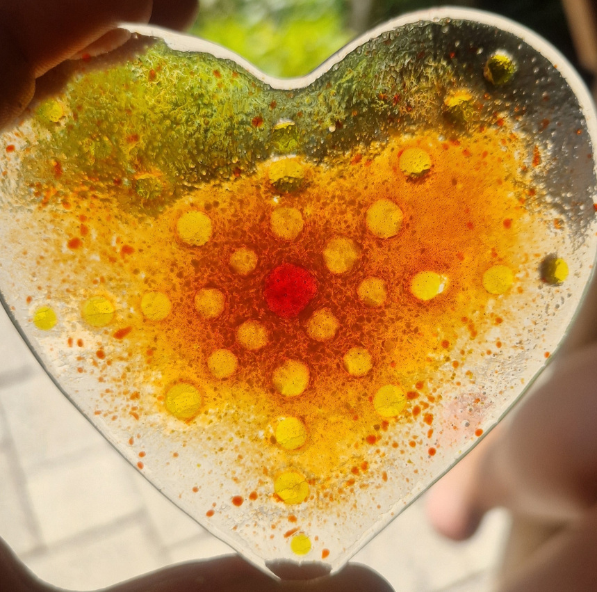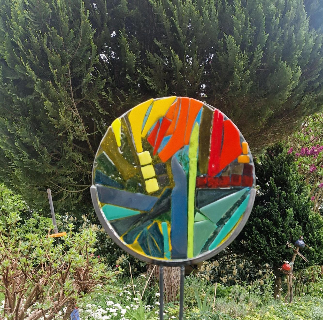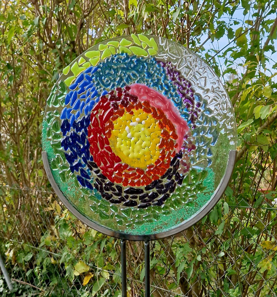 Trägerglas (30 cm), buntes Farbglas und Schmelzbrand
