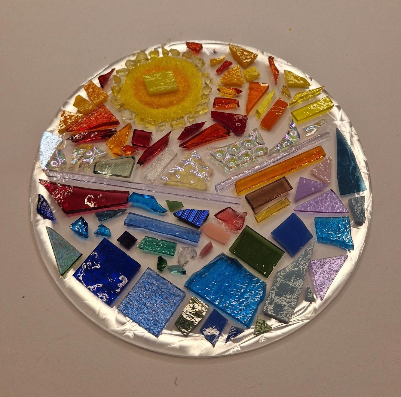Trägerglas (30 cm), buntes Farbglas und Schmelzbrand