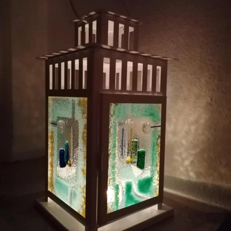 Trägerglas (30 cm), buntes Farbglas und Schmelzbrand